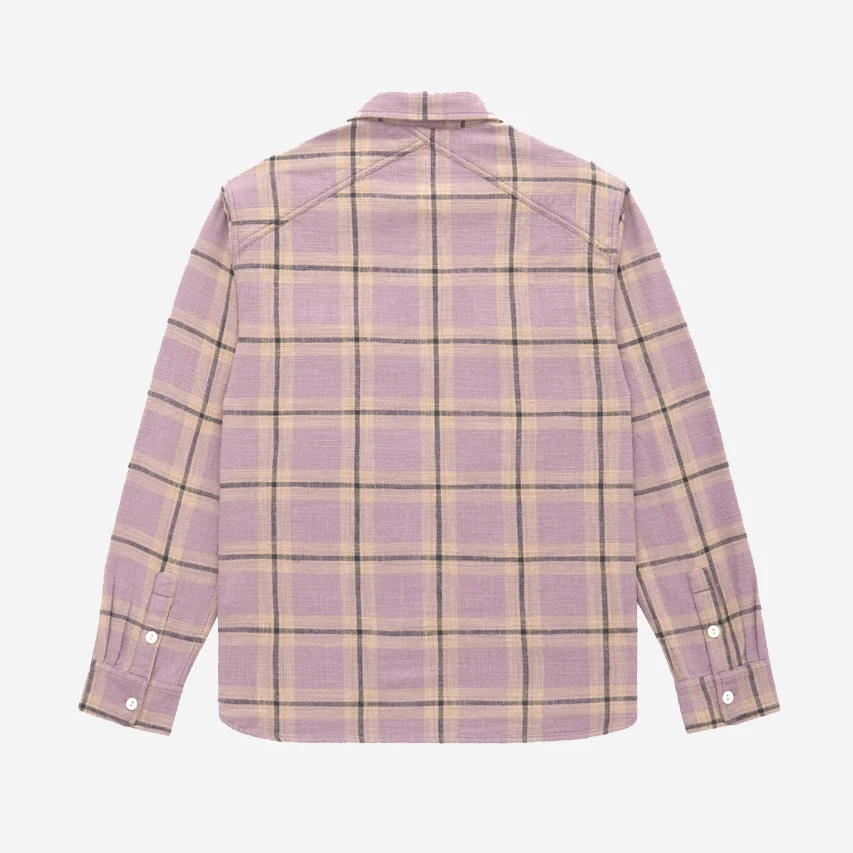 The Crosscut Flannel is a flagship 3sixteen silhouette and features a custom woven cotton flannel fabric, a crossed back yoke, and enamel-coated metal buttons that will patina and chip over time. The fabric is made entirely to their specs, down to the irregular yarn thicknesses that yield a highly textured slub hand and the brushed exterior and interior.