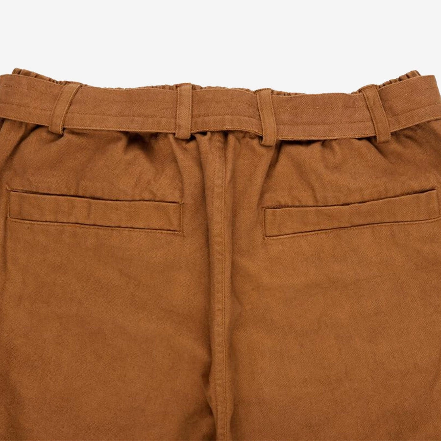 New for FW22, the Service Pant is a straight leg pant with an elastic waist and self-fabric belt. The elastic waist allows for choice between multiple sizes and the self fabric belt can be removed and replaced with a traditional belt if preferred. The pant features a single angled thigh pocket with a zip closure, angled front pockets and welt back pockets.