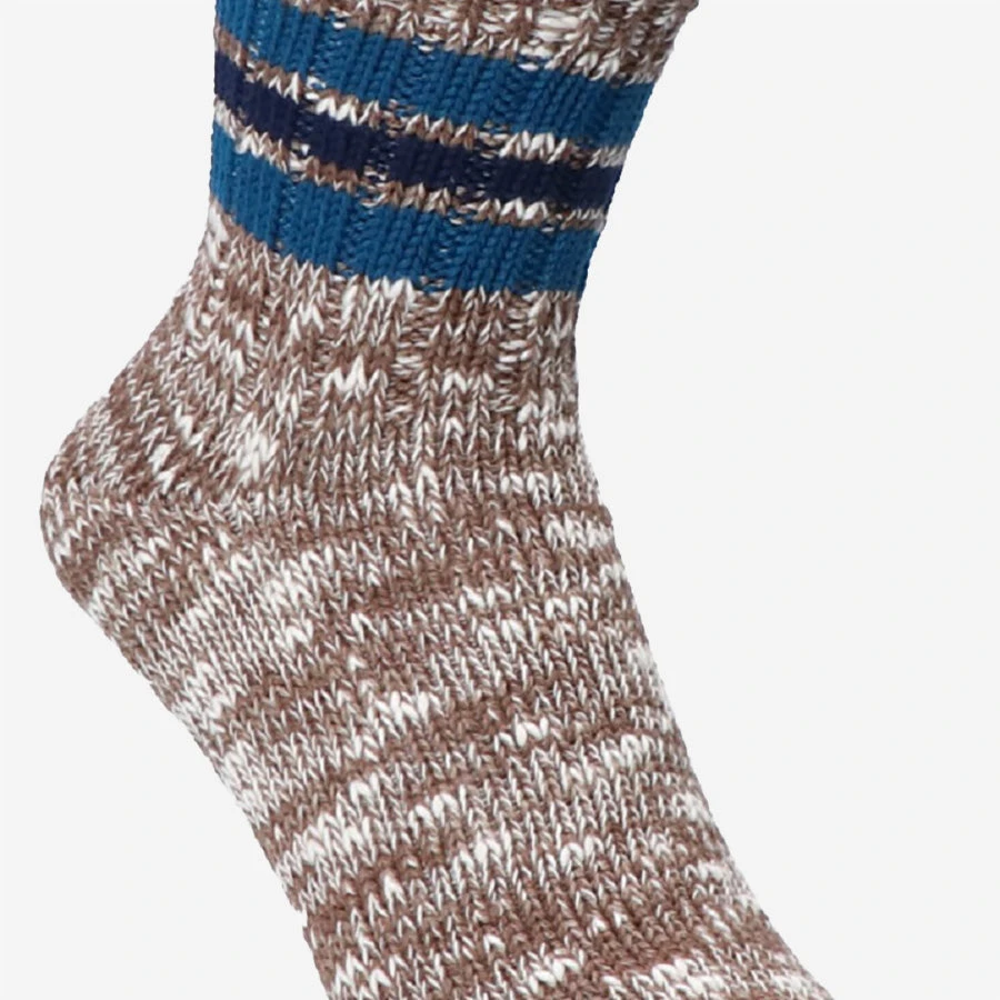 Distinguished by its multi-pattern top cuff, the 3 Line Slub Quarter Sock features a slub weave with distinctive stripes and is finished off with a ribbed cuff.
