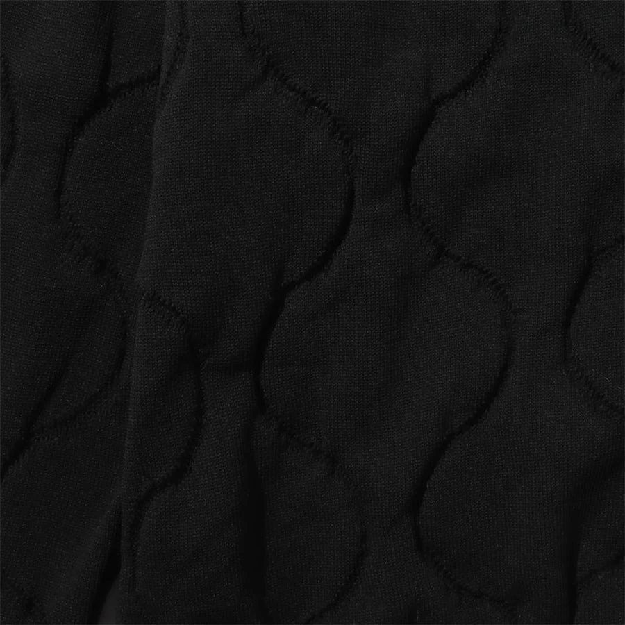 Ecopet yarn is a 100% recycled material yarn using recycled PET. It is a material with excellent lightness, comfortable stretchability, and soft touch due to special thread processing and dyeing. The loofah (or dumbbell) quilt stitching pattern makes good use of the force that is a characteristic of the thread, and a three-dimensional expression is realized. Ribbed neck, hem and cuff finish off the look.