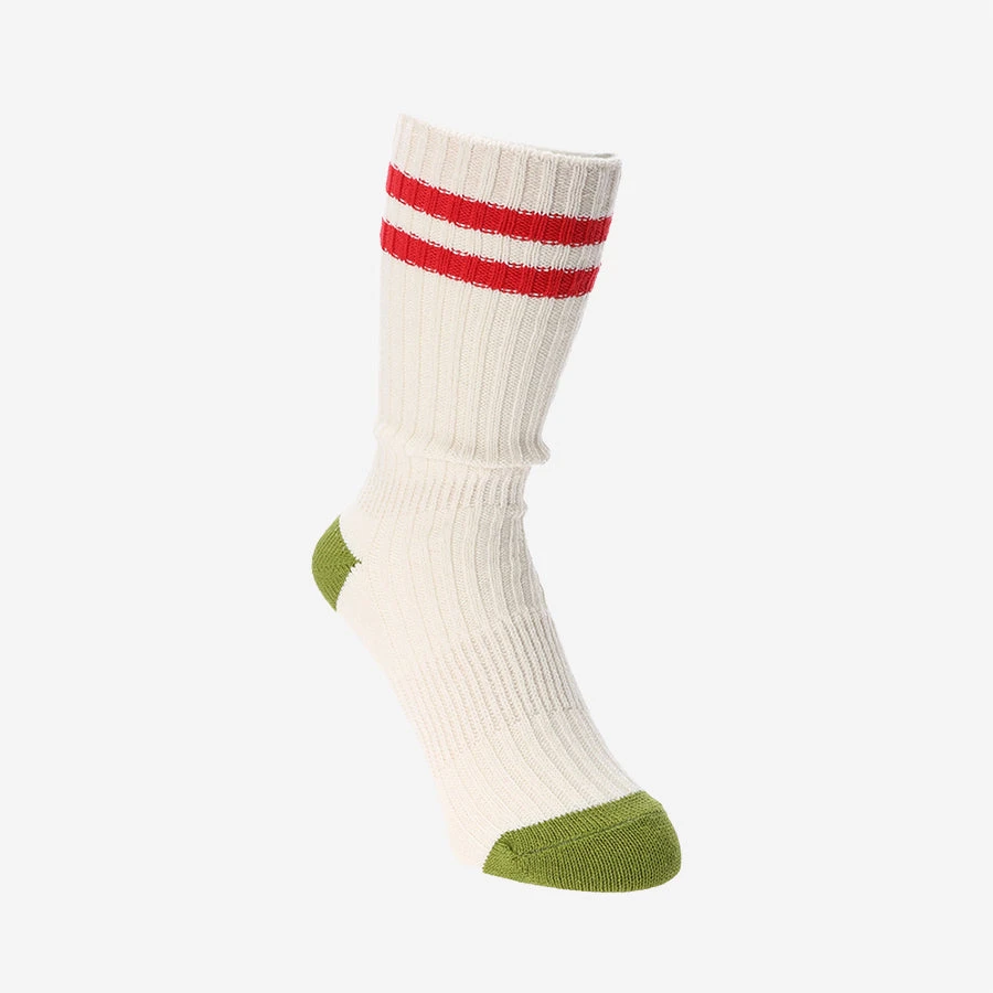 Bright and bold, these Recover™ cotton mix crew socks will add a pop of colour to any casual outfit. Trimmed with collegiate stripes wrapping around each cuff, the rib knit pair have been made in Japan with both comfort and cool in mind. The socks features an all over woven design and is finished off with contrasting heel and toe.