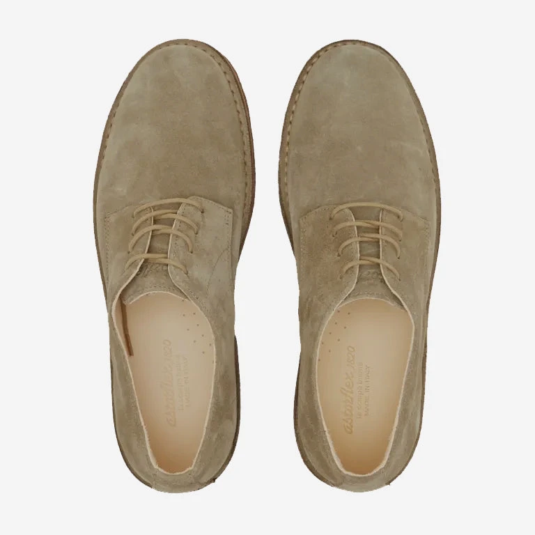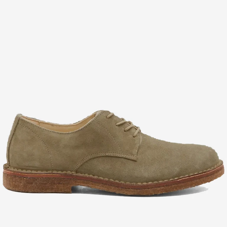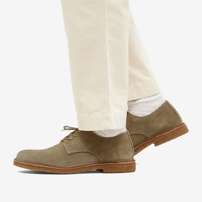 A combination of contemporary casual style and heritage manufacturing processes, the Cityflex derby shoe from Italian shoemakers Astorflex offers an elegant model for daily wear – a low-top version of the much-loved Greenflex desert boot. Dressed in a military-green hue, this crepe sole silhouette is perfected with a timeless sophistication. Mature and effortlessly cool, add this pair of suede derbies to your rotation for an instant injection of Italian style. Tonal flat and round cotton laces included.