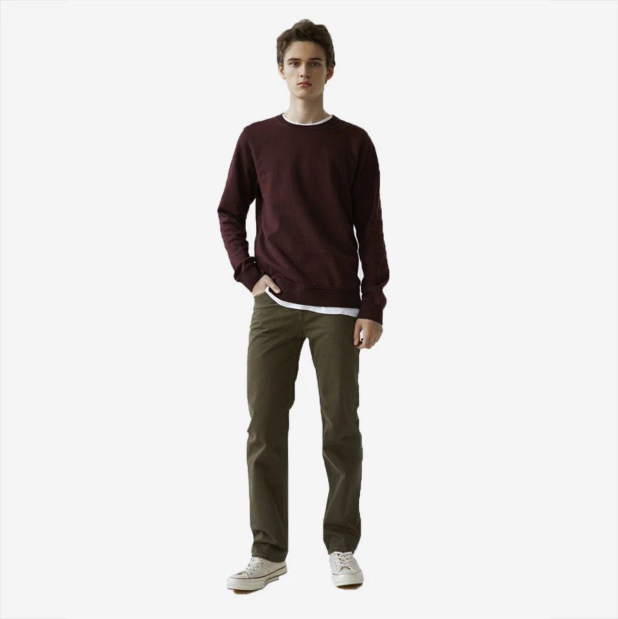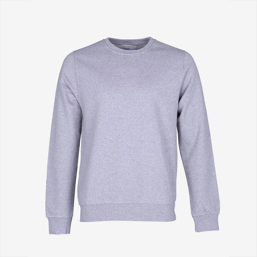 There is endless versatility with this regular fit crew sweatshirt. With a clean design, simple look and comfort incorporated into the design, it continues to be a must-have staple. The outside is densely knitted for a smooth feel and clean look while the inside is brushed for a soft and comfortable feel. The colour is garment-dyed into the fabric giving it a livelier look and long-lasting colour fastness. Pre-washed, so it won’t shrink or twist despite how many times you wash it. Made to last in a sustainable manner at our factory in Barcelos, Portugal. Build your wardrobe around these modern basic sweats and let outfits come together themselves. Taken from the different shades of grey found on a rocky hill side. Heather Grey has the balance of these shades. A rock is never just grey.
