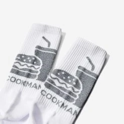 These unique socks are equally good for working in the kitchen or on a weekend stroll and make the perfect gift for the foodie in your life. Featuring a rib texture upper as well as on the midfoot, these socks are characterized with reflective Cookman branding and a burger and drink motif.