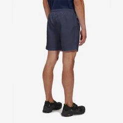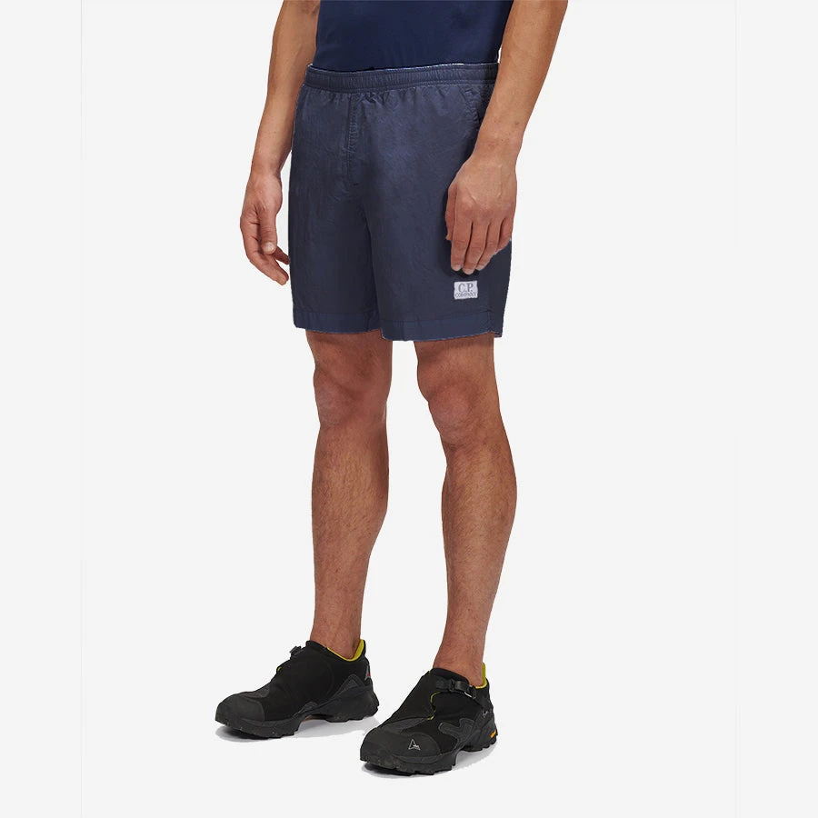 Nylon dyed swim shorts constructed with an elasticated drawstring waist, hand pockets and a logo detail. Flatt Nylon is an emerized nylon. The resulting fabric is softer and has a matte finish, similar to any fabric that has been worn and washed many times.