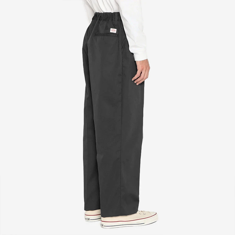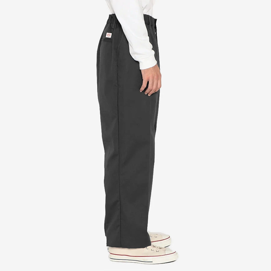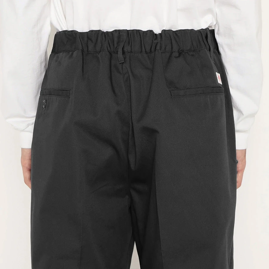 Danton’s Easy Pants feature a lightweight polyester and cotton blend, with a high density and solid surface feel. The elasticated waistband makes wear easy with the addition of a button closure and belt loops. The roomy fit is slightly tapered at the knee, and storage is offered with inset hand pockets and rear welt pockets. A centre crease line down the pant’s leg makes for a sharp and distinct accent. The perfect pant for a sophisticated yet casual look.