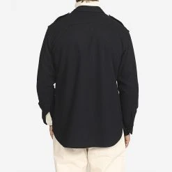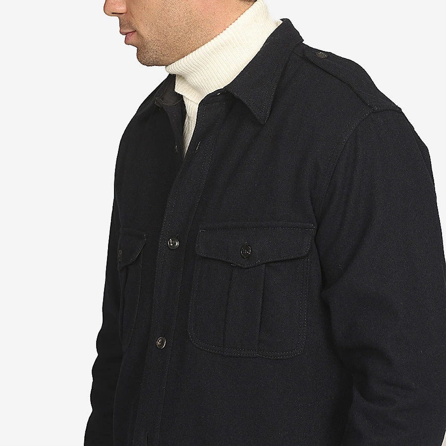 Applying a hardy, cold-cutting wool-blend fabric to a timeless overshirt silhouette, this army-styled, durably crafted piece features a point collar with a single-button closure, a button front placket, bellow patch pockets with a button closures, a straight hem with side slits and a regular fit. Finished with shoulder epaulettes and buttoned cuffs.