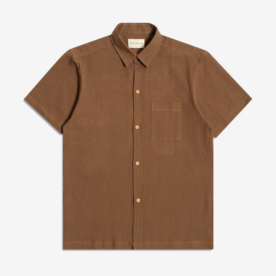 For fans of subtle yet sublime detail, the Costa Shirt is made from a delightfully textured, 100% BCI cotton seersucker. Featuring wooden buttons, a classic collar, square chest pocket, and square hem with side vents for added comfort. Finished with a woven brand tab on left seam.