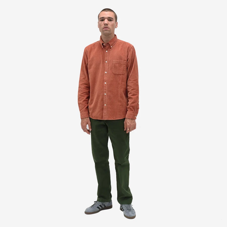 One of the most infinitely-wearable pieces that can be found in any wardrobe, a cord shirt is versatile, comfortable and effortlessly cool. This version features a button down collar and rounded chest pocket in an organic cotton, 8-Wale corduroy.