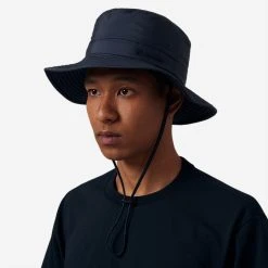 This lightweight bucket hat is made of a durable high-density rip-stop material that offers protection against sudden weather changes. The hat offers superior water-repellency and ventilation and is styled with tonal embroidered branding. Finishing features include an adjustable drawcord fit and adjustable/detachable chin strap that’ll come in handy when the wind picks up.