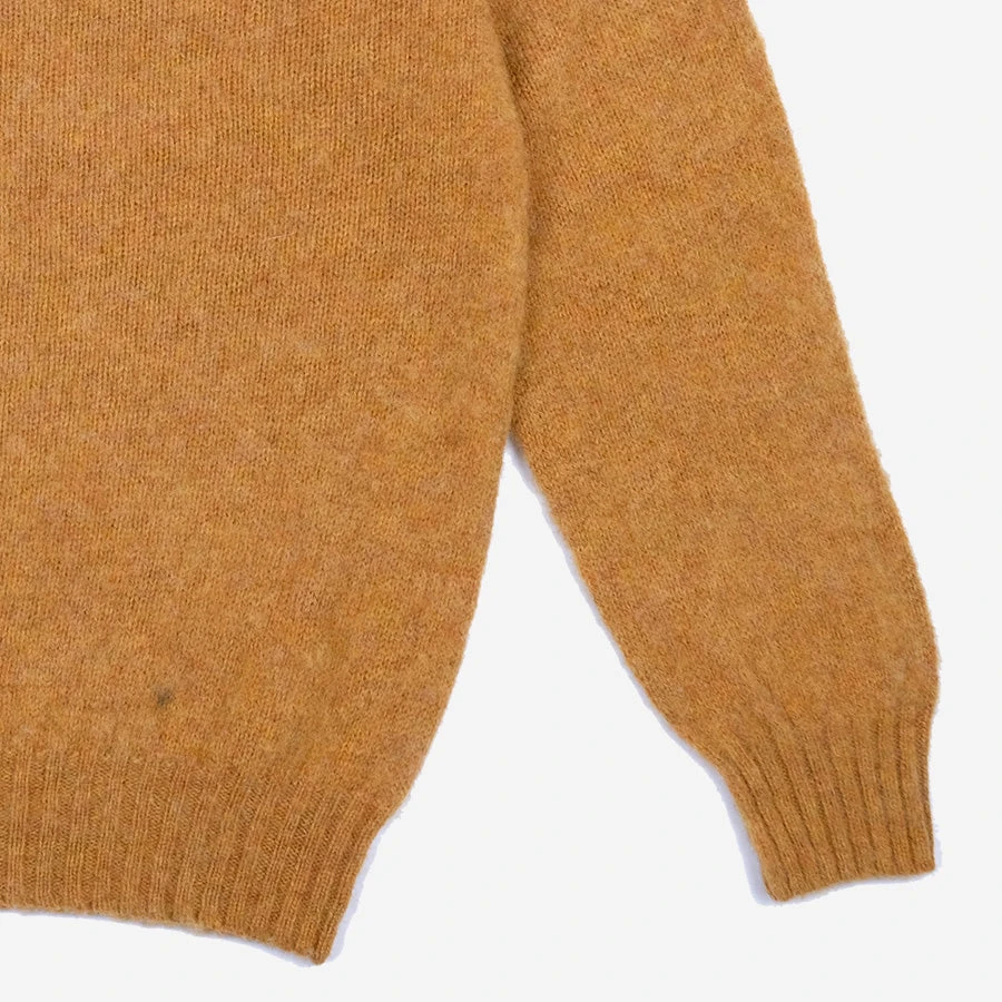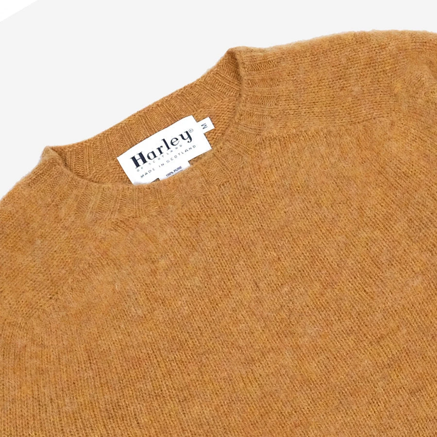 This classic crewneck, medium-weight, knitted sweater is expertly crafted in Peterhead, Scotland from supersoft brushed Shetland wool. The wool is spun 12 miles away from the Harley factory by JC Rennie, a wool mill that has been operating for over 200 years. The wool is soft to touch with all of the strength of a great Shetland sweater (or “jumper”). Seamlessly knit, meaning there isn’t a seam on the entire garment, the sweater is finished with ribbed trim throughout.
