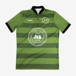 In celebration of our 3 year anniversary, we teamed up with local boutique soccer kit customizers, INARIA, to create a bespoke soccer jersey. Based on their Classico silhouette, this jersey features classic polo styling with updated details. Presented in a horizontal stripe colourway, the two thick olive shades are contrasted by the black engineered rib collar and sleeve cuffs. An exposed two-button front placket and sublimated style back panel finish off the look. The jersey is accented by the “All Fruits Ripe” logo in the centre, a crest at the upper back neck and the number 3 at the back, representing 3 years.