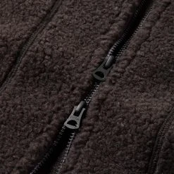 This vest features a crimp boa that curls the hair to prevent it from falling out and retains warmth by trapping air. It has strong wind-breaking characteristics too, achieved by the dense knitting of the wool blend yarn. It is an item that can be worn as a middle layer with excellent heat retention and light weight. The materials and design ideas are based on the vests worn by American baseball players during off-season. In order to make the back look beautiful when worn, the back length is slightly elongated. Finished with a double-zip and side-seam pockets.