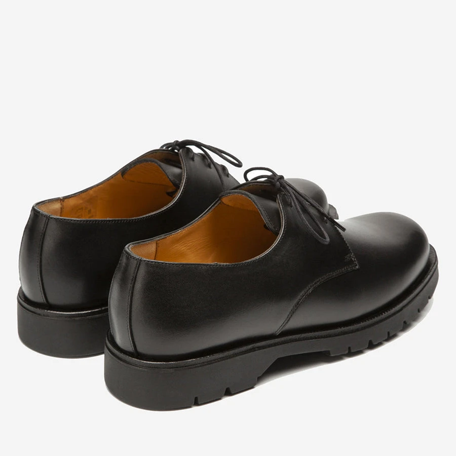 Crafted in KLEMAN’s French workshop, the DORMANCE wears a rounded shape with raw and authentic elegance as a legacy from their professional models. Made from quality European leathers, this black derby shoe is placed on a black rubber sole standard EN-20347 known for its anti-slip and anti-abrasion properties. For greater resistance to wear, the DORMANCE is lined in beige calfskin. Its Poron® insole absorbs shocks and provides optimal comfort.