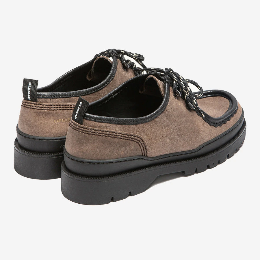Kleman presents the MAJOR in a limited edition* hiking-inspired capsule. Featuring hiking laces and 2 lace hooks, the grained leather MAJORs are made in their French workshop. The grained leather gives an authentic appearance to the leather which is embellished over the years with a unique patina. This derby shoe is cemented and stitched on version 2.0 of Kleman’s iconic EDITO GRIP sole, with the same grip and robustness characteristics. The lug sole has a higher thickness as well as a “wall” all around the sole allowing a side sewn construction. Finished with recycled polyester laces and branded pull tab at the back heel and golden inscription on the inside heel.
