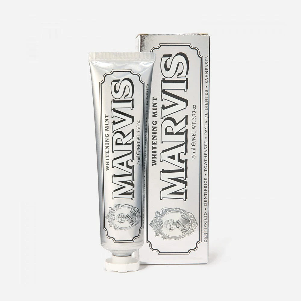 Whitening Mint’s cold, polar thrill provides a long-lasting taste emotion and its whitening effect creats an unforgettable smile. The formula contains Fluoride which helps prevent tooth decay, fights tartar and plaque and keeps your breath fresh all day long. Housed in the distinctive colourful Marvis tube, with elegantly sculpted cap, this fantastic tasting, rich and creamy toothpaste will leave your teeth clean and protected.
