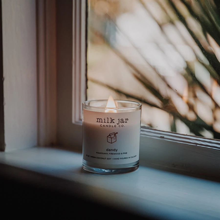 Meet Dandy, the first milk jar created and their most popular in the line up. Top notes of rich mahogany and blood orange with mid notes of golden amber. Refreshing pine and a touchy of smokey firewood is blended in to reminisce the great outdoors. Scented with phthalate-free fine fragrance oils.