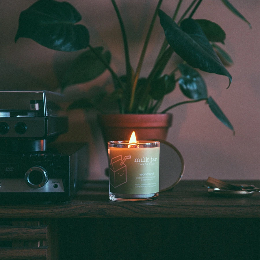 Milk Jar’s ‘Essential Oil’ (EO) line encompass clean burning to the fullest potential, using the most natural ingredients and plant-based oils. Woodland is an invigorating blend of eucalyptus, rosemary and cedar wood essential oils. Like a wet forest floor, let this blend ground you and provide balance to your space.