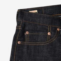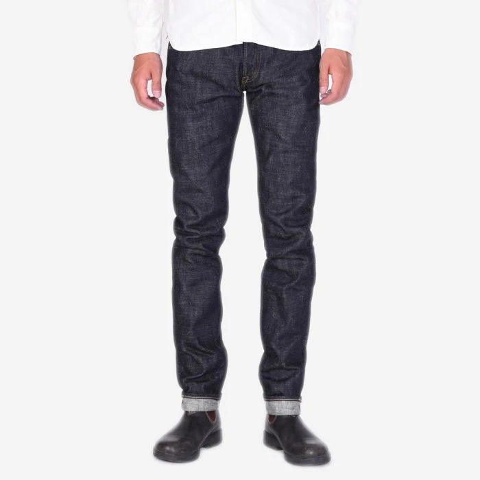 MOMOTARO’s “Tight Tapered” fit is a very slim and modern tapered fit. The waist is true to size, with a low rise, slim thighs, and a strong taper throughout the leg.