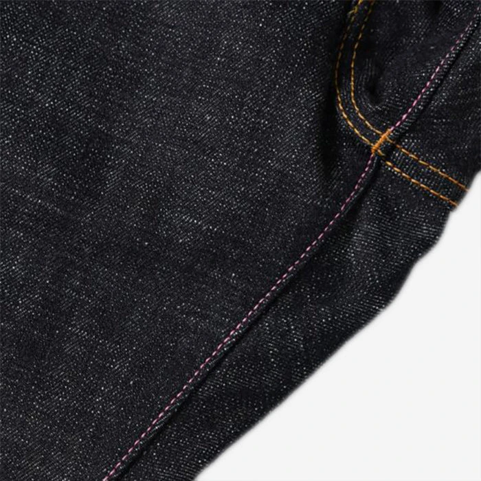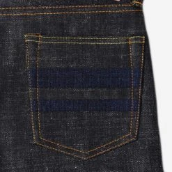 The 0306-82IE from MOMOTARO is sewn using a sanforized denim that features an uncharacteristically high amount of slub texture, made possible through a low-tension weave style coupled with US Cotton. The denim sports a classic indigo colour that will fade to a vintage blue with wear. For the iconic “Going to Battle” (GTB) stripes, MOMOTARO has used vintage embroidery machines. This raised texture will become enhanced with time and fade beautifully. This embroidered detail is made with grand indigo dyed threads. Other classic details include pink selvedge and inseam, both of which serve as an homage to the peach in the original “Momotaro” folktale. The “Going to Battle” stripes are a symbol of Japanese tradition representing honor and strength. The warrior stripes also represent the flag carried by “Momotaro” in the folklore story.