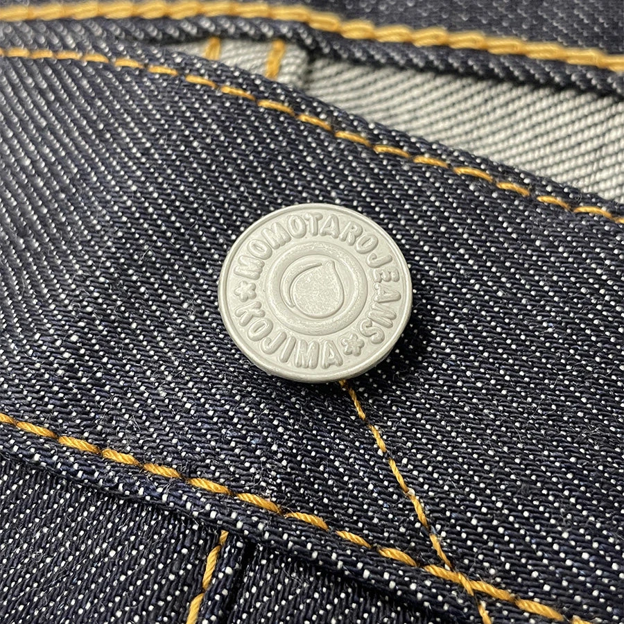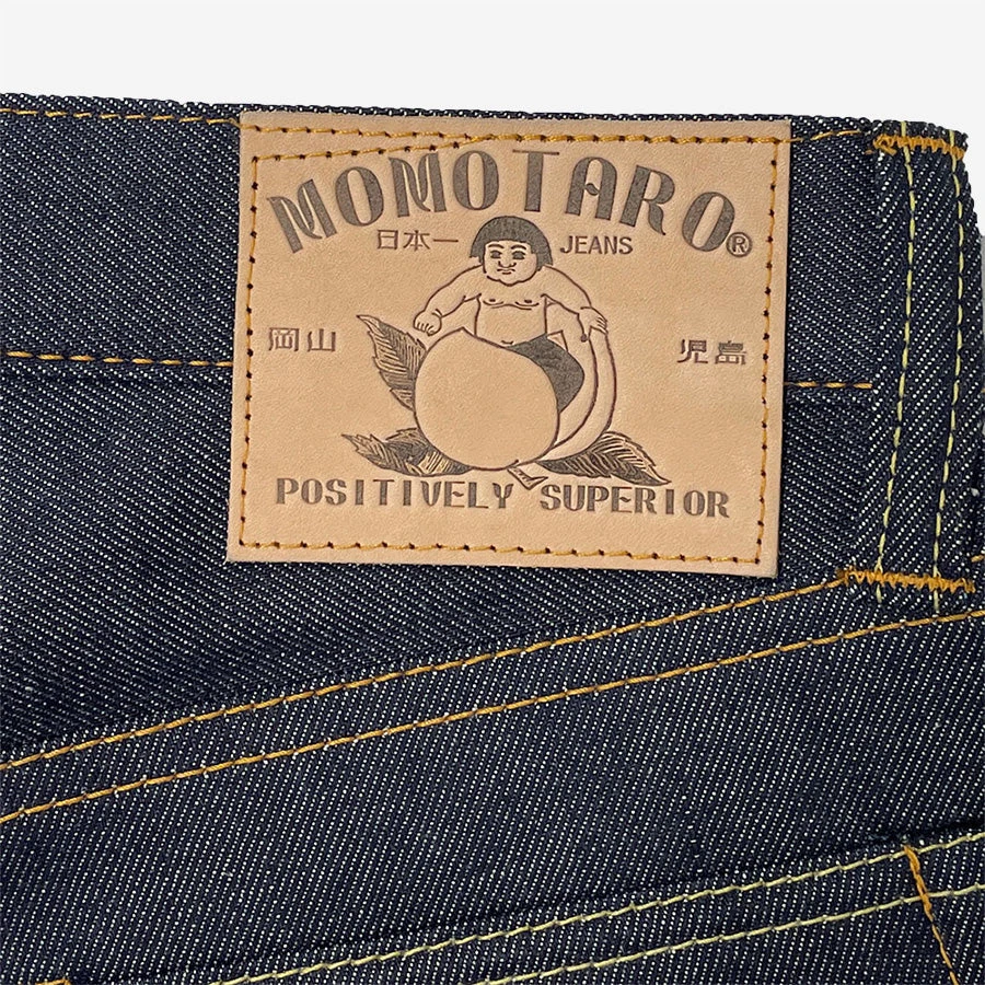 This “Ultimate Pima” is raw cotton of the Sea Island species organically grown in the U.S.A. The growing period is one month longer than the Upland species and has a lower yield per area than the Supima species. Sea Island Cotton, also known as “black seed” or “Gossypium barbadense”, boasts a unique set of characteristics that places it above other species. At 36/37mm, the staple yarn is extra-long and is super fine in texture. It also has a significant brightness of 3.1 to 3.4 Micronaire (which measures the permeability of the cotton fibres when compressed). All this results in a cotton that is noticeably stronger, softer and more luxurious. Loaded with signature MOMOTARO details, including pink selvedge and inseam, both of which serve as an homage to the peach in the original “Momotaro” folktale. Branded leather patch and hidded selvedge coin pocket round out the details.