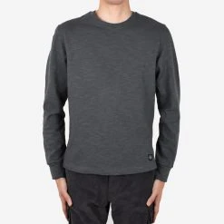 This long-sleeve t-shirt is made using a thick, double-jersey slub, Toronto-milled cotton fabric. The t-shirt sports a split, elongated back hem, cuffed sleeves and exterior label on the front hem.