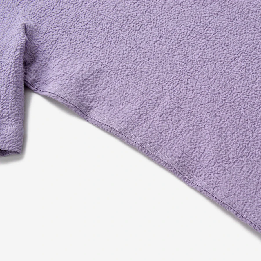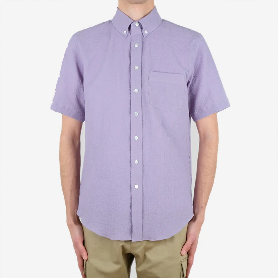 This shirt is made using a breathable, Portuguese cotton seersucker fabric. The shirt is constructed with double-needle seams, a standard breast pocket, button-down collar and is finished with white mother of pearl buttons.