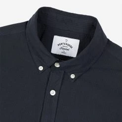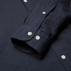 The Atlantico shirt in Navy is a light-weight cotton in a striped seersucker fabric that screams summer. Featuring a surface consisting of puckered and flat sections, the Atlantico is the perfect shirt for those warm summer days.ย The back hosts a single box pleat at the yoke, increasing the range of possible movement.