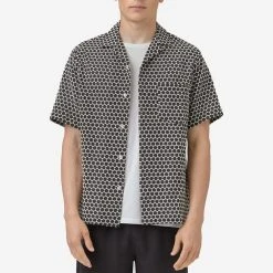 The Folc is a summer-ready shirt in a soft and lightweight Cotton/Poly blend. Embroidered with a geometic pattern, this Vacation (or Camp collar) shirt is sure to liven up any wardrobe rotation. Made in Portugal, this style is trimmed with a patch pocket to the chest, open collar and white buttons finish the look.