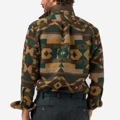The Morpheus overshirt is cut from thick wool blend in a abstract pattern. It has a nice weight to it so it will work as outerwear or a between layer, depending on the temperature. The overshirt features a curved hem and features two front flap pockets and finished with faux horn buttons.