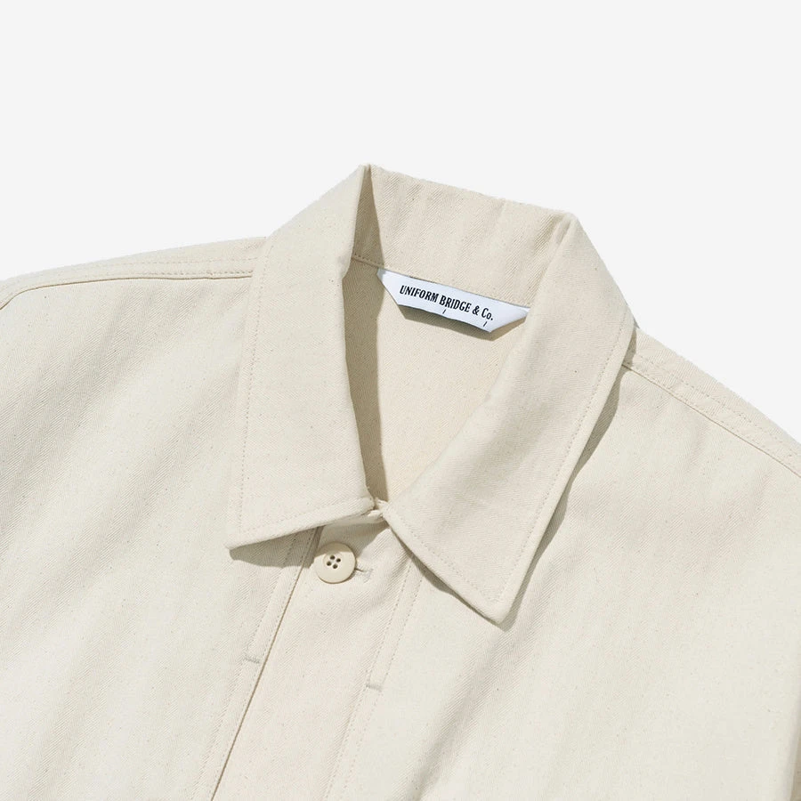 Uniform Bridge takes inspiration from an archival USMC over shirt to create this rugged yet wearable piece. Made from a herringbone twill, or HBT, the two (somewhat hidden) symmetrical chest pockets were initially designed to contain two personal floatation ‘bladders’ which were inflated for amphibious landing to help keep the soldier afloat, though were much more commonly used as large storage pockets, making this jacket incredibly practical. The cotton shell offers maximum breathability and layering potential.