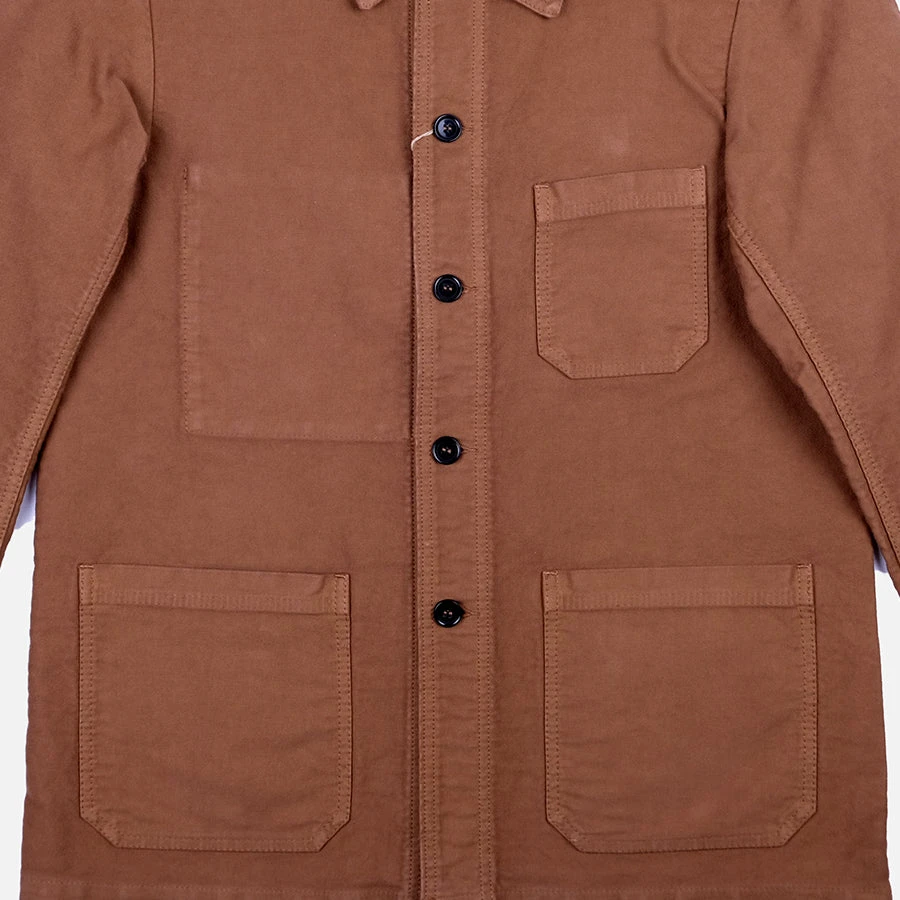 Still cut and sewn in France using the same traditional methods and materials, this Moleskin Workwear Chore Jacket is the perfect coat to welcome the chilly weather. Since it’s unlined, it allows for garments to be worn underneath. It hides an interior breast pocket and the straight hem and regular fit ensure you won’t feel constricted if/when you happen to wear a thick button-down with it. Moleskin is a heavy cotton fabric, woven and then sheared to create a short, soft pile on one side. The feel and appearance of its nap is similar to felt or chamois, but less plush than velour.